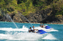 Our tour offers a unique, guided safari in which a group can observe and enjoy the islands, species, Dolphins and sea turtles, history and the coastline of Manuel Antonio Park, with safety and respect for the environment, in an exotic and thrilling Blue Adventure. (Read more)
